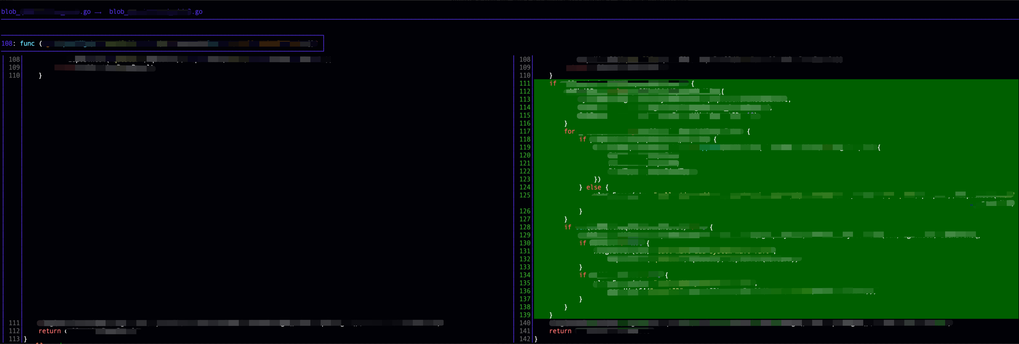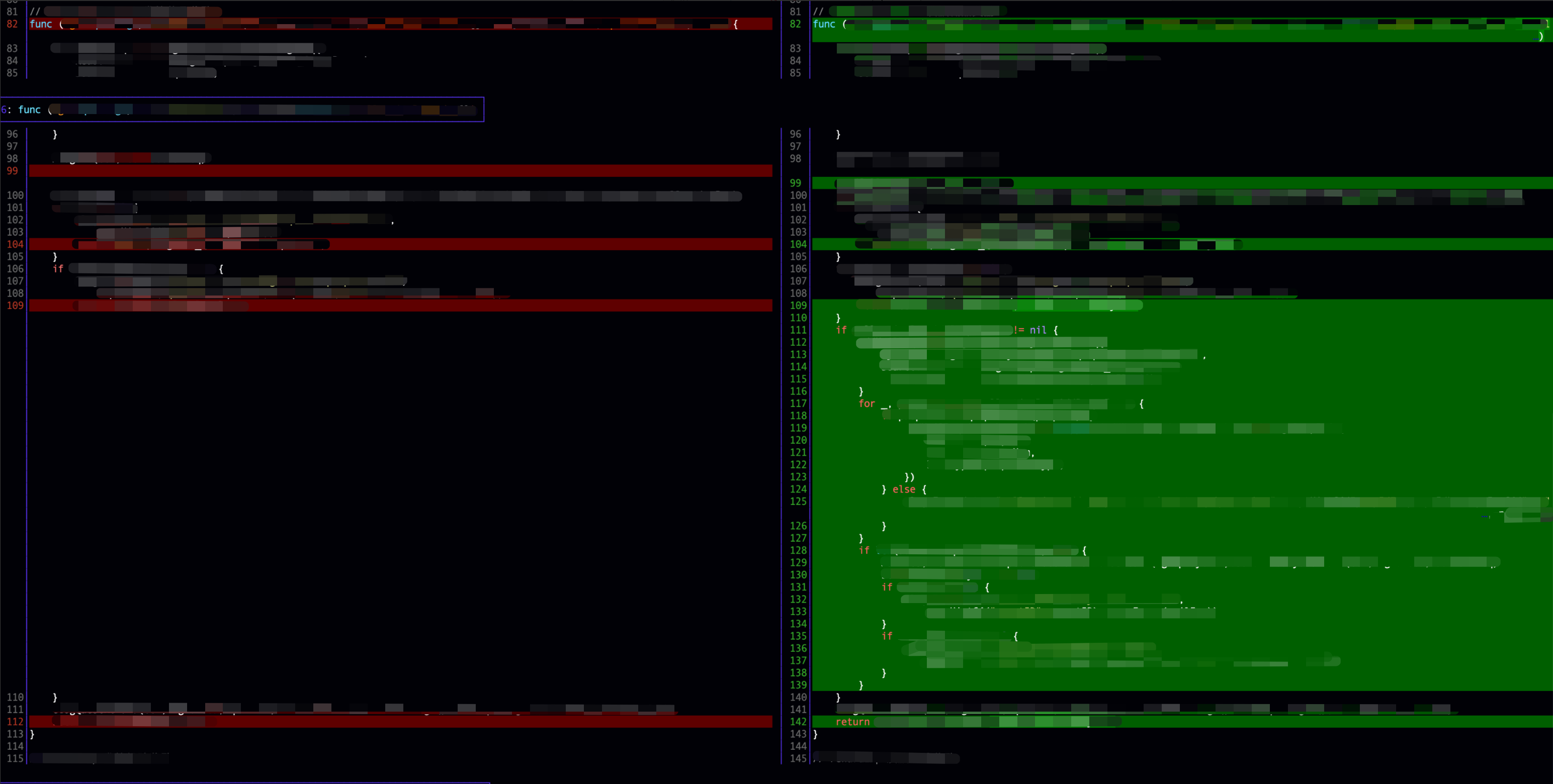 if (level == XDL_MERGE_MINIMAL || xscr1->i1 != xscr2->i1 || xscr1->chg1 != xscr2->chg1 || xscr1->chg2 != xscr2->chg2 || xdl_merge_cmp_lines(xe1, xscr1->i2, xe2, xscr2->i2, xscr1->chg2, xpp->flags)) { ... }这段代码大致是这个意思: