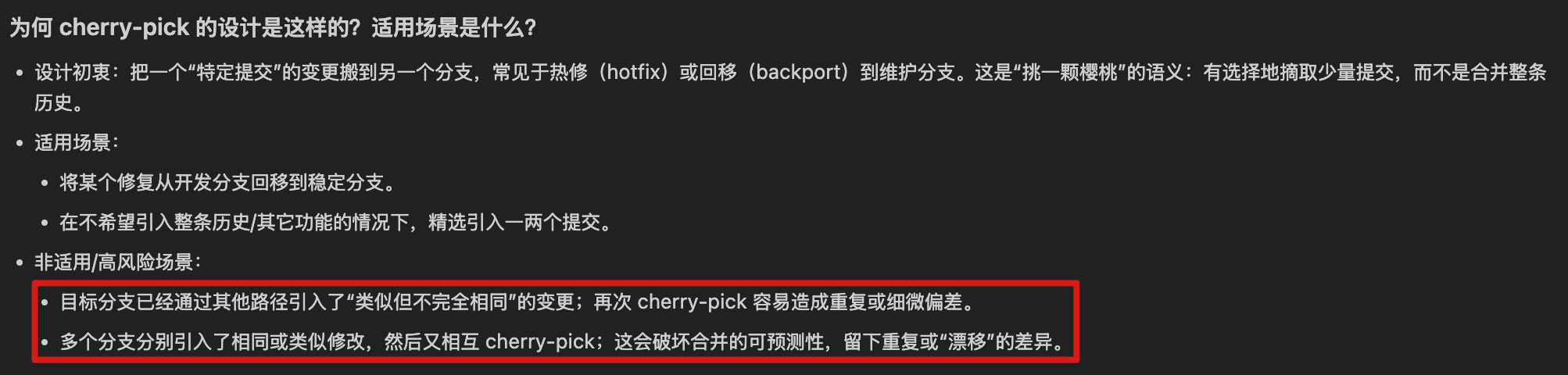 git cherrypick为什么有些人评价说“Never use git cherrypick”